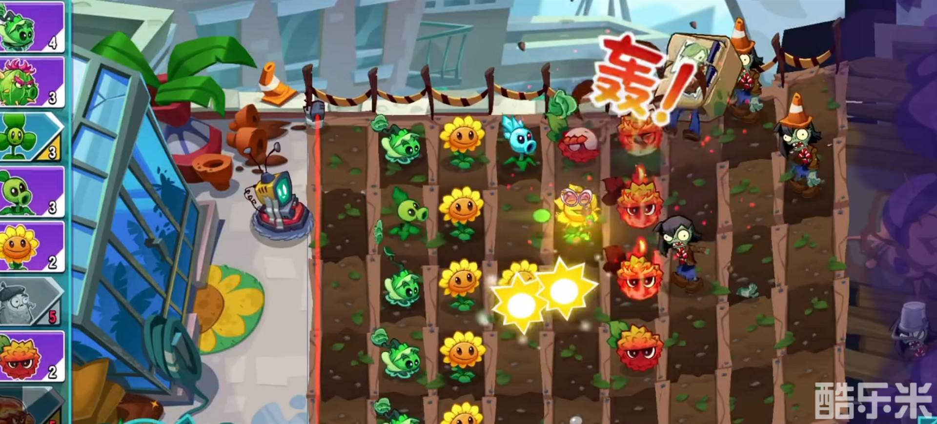 第一关我们会解锁冰箱僵尸及火系植物岩浆玉露,这一关挺简单的。冰箱僵尸惧怕火焰,岩浆玉露可以和其他植物合种,帮助其他植物进化成火系植物,我们可以利用岩浆玉露将向日葵进化成为熔岩向日葵,而熔岩向日葵可以帮助火系植物进化,实力也会提升很多。不过冰箱僵尸挺耐打的,最直接的方法就是用岩浆玉露炸,轻松拿捏第一关。第二关会解锁怪盗小鬼僵尸,它会偷走非火系植物,这关没什么需要注意的,怪盗小鬼僵尸没有那么厉害,拦住它就成。