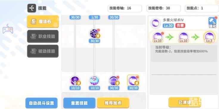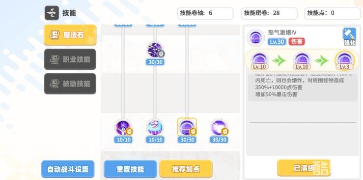 怒气激爆这个强力技能也要进行加点,它所引发的爆炸伤害足以对周围的怪物造成350%+10000点的伤害,并且还能增加50%的暴击伤害,火球术同样是一个极具实用性的技能,它可以扩大施法范围,这对于提高挂机时的清怪效率有着明显的效果,当与风刃术相互配合时,能够实现多段伤害打击,同时提升自身的爆伤属性,所以也是要加点的,那么同步使用的话风刃术自然也需要进行加点。