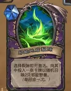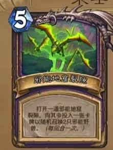 5费,打开一道邪能地窟裂隙。向其中投入一张卡牌以随机召唤2只邪能野兽。(每回合一次。)