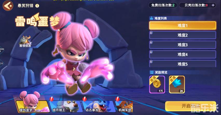 雷鸣噩梦、银月狼王、远古暴龙、机械军团,四大首领来袭,勇士们去狩猎吧!这四大首领各自特点不同,要求玩家们根据每个首领的能力和弱点制定相应的策略。完成悬赏狩猎,可获得金币、贝壳、琥珀碎片、图腾、魂石等珍稀物品。