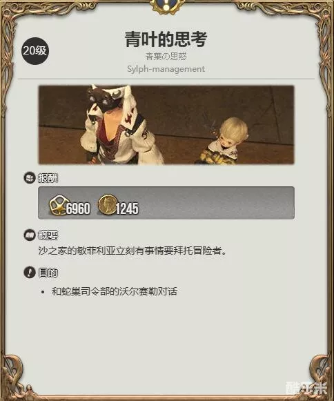 2、去沙之家(6.9.6.1)找【敏菲利亚】接任务【青叶的思考】。