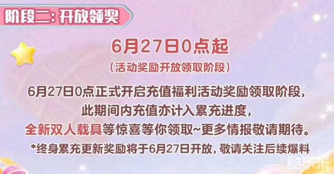首先要提到的,当然是这次周年庆活动中最具吸引力的福利环节——充值返利。活动分为两大阶段,不仅让玩家在短期内体验到了丰厚的奖励,也巧妙地借助了“延迟满足”的心理,激发了玩家的参与热情。第一个阶段是预充值期(6月6日-6月26日),只要你在这个时间段充值,就能得到100%的充值返利,并且额外获得一个限定表情《惊喜礼物》。虽然这款表情并不会提升你的角色属性,但借着动态特效,它一定能成为你在社交平台上的亮眼话题。而等到第二阶段,大家可以在6月27日到7月10日期间领取奖励,累计充值30元就能解锁一款限定的双人载具“糖果热气球”。这辆载具不仅有着甜蜜的糖果特效,还需要两个人协作才能控制它,完全符合情侣或朋友间的互动需求。