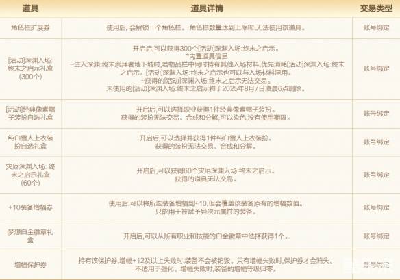 活动期间获得的礼盒和有期限道具将于2025年8月7日凌晨6点删除,请注意使用。