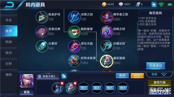 痛苦面具可以为高渐离增加非常可观的法术攻击,并且还能够增加高渐离的最大生命,高渐离释放一技能时,可以通过敌方单位以及附近的敌方单位进行来回传导,结合痛苦面具的被动效果,当自身的技能命中敌人之后,敌人会受到当前生命值一定百分比的法术伤害,可以快速消耗敌人,同时痛苦面具还可以为高渐离增加法术穿透效果,与秘法之靴增加的法术穿透效果叠加起来,即便面对坦克英雄,高渐离也可以轻松的打出极为爆炸的输出。