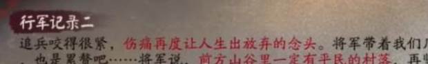 2、将军带着我们几个也是累赘吧……将军说,前方山谷里一定有平民的村落,再坚持一口气,争取在天黑前赶到,就会有足够的药物,敌人也很难追上我们了。