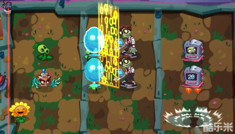 当大家通过第一关之后,到了第二关就会出现机械墓碑,从天上会出现大量的墓碑,要在规定时间内将其击破。这里就需要用上电流醋栗,他可快速破碑。再搭配上小喷菇,就可以造成电流输出效果,输出效率更高。