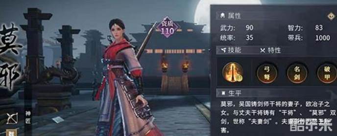 作为主力输出型武将,阵容上最好给欧冶子搭配辅助型队友,莫邪在游戏中的技能殉剑能降低自己的生命值来为友军提供高额的攻击加成,和欧冶子在前期能组成相当不错的过渡阵容。所以前期的话建议搭配西门豹和莫邪,后期成型则换成信陵君和申不害。战斗中如果同时拥有欧冶子和莫邪,则将解锁相关羁绊为场上武将增加属性。