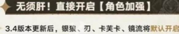 4、新功能:如剧情跳过、角色加强(银狼、刃、卡芙卡等)等优化内容。
