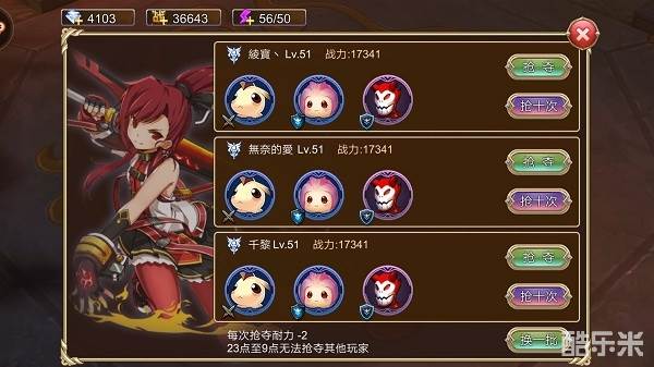 在夺宝环节中,玩家自己的宝物碎片也会被其他玩家夺走,所以要持续提升战力才能保护好自己的宝物碎片噢。另外,每次夺宝无论成功与否,都会消耗掉两点耐力值,耐力值消耗完后每隔一段时间系统会自动回复,没有耐力值是无法进行夺宝的。