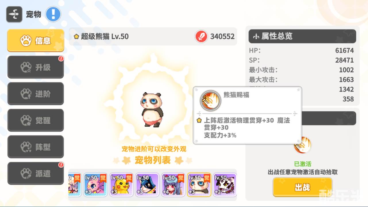 5.每个宠物上阵后将激活特殊属性,每个宠物都拥有不同的特殊属性