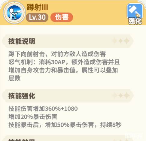 蹲射 推荐:15-10-3。优秀的buff技能,暴击后技能本身被动增加70爆伤加上可叠层的攻击力和爆伤。