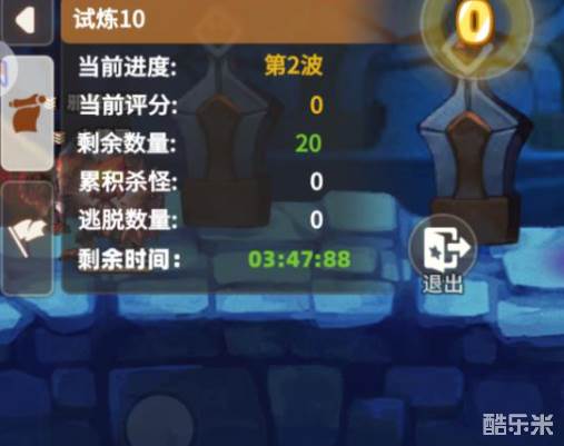 试炼10 阻止敌人前进!这关咱们只需要前面随便打死几只小怪,等到时间结束就行,有积分就能通关。