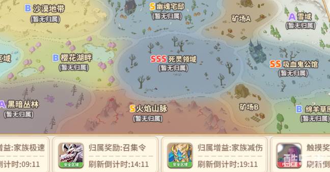 ·机械之城、猫头鹰之城、冰雪之城的域外战为争夺首领掉落归属,掉落归属将给予排行榜内第一名的玩家,直至域外战结束时将根据结束时的掉落归属给予所在玩家家族全体成员强力的增益或召集令