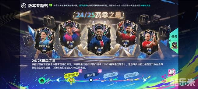 世俱杯是检验俱乐部实力的舞台,而《最佳球会》新版本的“赛季之星”将精选现实赛季的出色球员,并基于球员真实赛场表现动态调整能力值,打造【24/25赛季最佳阵容】!