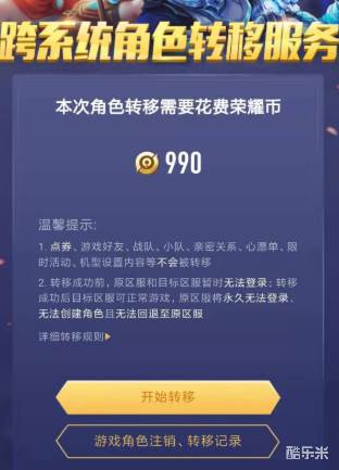 无法免费转区,必须花费99元在营地购买荣耀币
