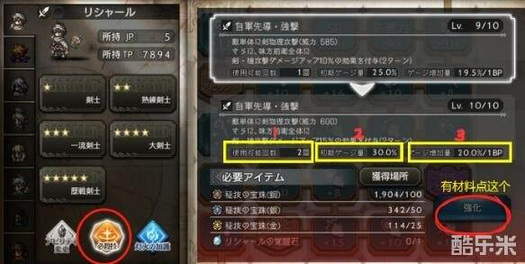 6、操作顺序:队伍角色属性界面点击技能习得 点击左下角橙色的必杀技 右侧点击强化