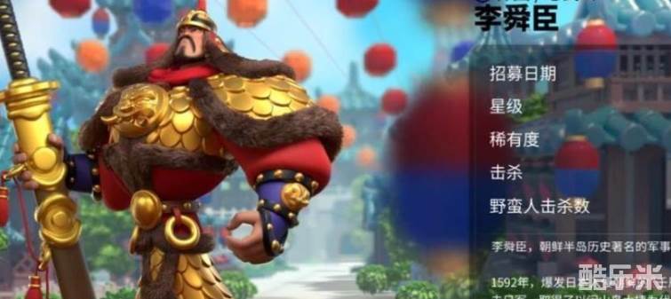 李舜臣是传说品质的驻防武将,算是守旗万金油,应用范围较为广泛。核心输出技能名为忠武公,在野战的时候会对单体造成系数为两千的技能伤害。系数非常高,但是只是单体,没有群体效果。在驻防的时候则会对扇形范围内的敌人造成一千四系数的伤害,属于群体伤害,攻击目标部队最多为三个。不过每多命中一个目标,就会让后续的伤害降低百分之十五。下面和酷乐米小编一起来看看吧