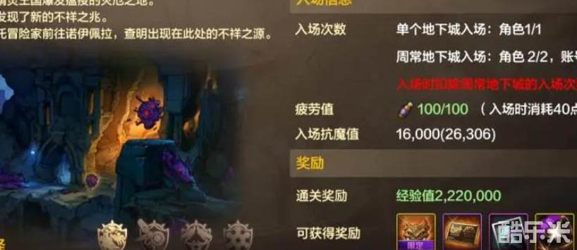 最近的更新中推出了一个新的周常地下城玩法,4个周常副本入场抗魔值依次递增,玩家可以从中选2个挑战,通关即可获得包括秘库通行证、炉岩炭在内的奖励。下面和酷乐米小编一起来看看吧