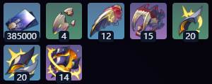 信用点×385000、步离犬牙×4、狼毒锯牙×12、月狂獠牙×15、预兆似有若无×20、悲鸣由远及近×20、哀叹漫无止息×14