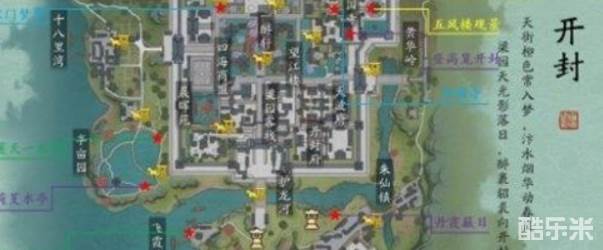 天涯明月刀手游赛季服胜景录开封打卡坐标在哪,游戏全新的赛季服里面有开封的打卡地,很多玩家想去打卡,但不知道位置,下面和酷乐米小编一起来看看吧