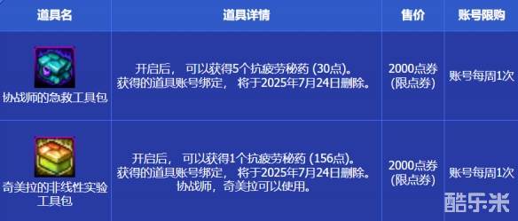 2、两个道具分别售价2000点券,每个账号每周1次;
