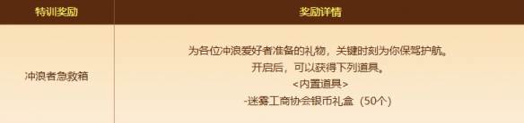 3、且每周完成3天特训还能获得冲浪商店奖励,如果错过可以签到进行特训但是奖励无法获得。