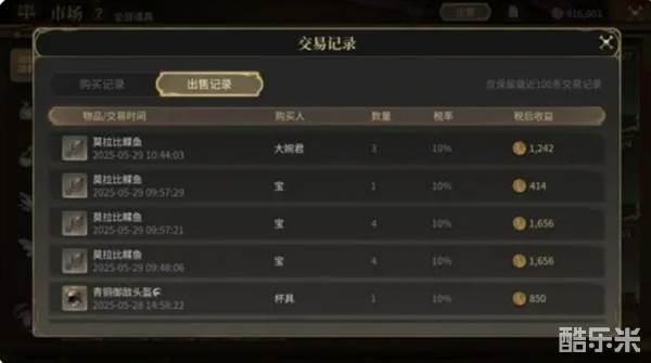 游戏里有不少道具是可以出售的,比如理符任务、军队筹备、工匠采集职业任务所需的道具、挖宝产出的稀有道具以及满级过渡的工匠手搓装备等等是可以挂上交易板交易的。