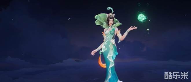 4、皮肤设计:主要以白玉荇菜和自然流水为灵感,把叶片和水波纹理拟作衣袂。