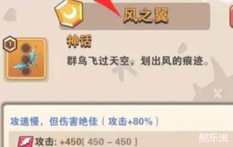 4、风之翼:神话品质的弓,攻击力高,但攻速慢,暴击伤害提升80%。