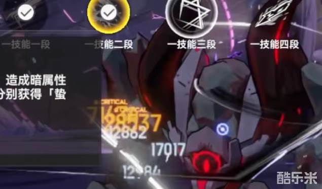 塞尔凯特的普攻“潜袭的锋刃”就能给敌人带来可观的伤害。她的攻击造成的是997.1%的暗属性伤害,在普通攻击的最后一段命中后,还能获得“蛰影·幽盾”标记,给她带来持续输出的潜力。而她的特殊普攻技能——潜袭的伏杀,则能消耗标记释放,造成309.6%的攻击力暗属性伤害,并且能再次获得“蛰影·幽盾”标记。这个机制看似简单,却为她的连续输出提供了更多保障。