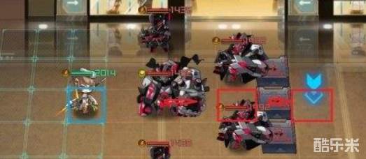沐子菲在下图位置部署,使用绝云突击A移动到中间怪后面一格如下图第一个箭头,然后再次使用绝云突击到达障碍后一格第二个箭头即可通关。