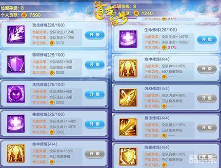 本次仙盟科技总共开放八个模块,分别提升全队的攻击、物防、法抗、生命、命中、闪避、暴击、抗暴这八个属性,道友们只要达到65级后只需要消耗少许贡献值即可修炼哦!