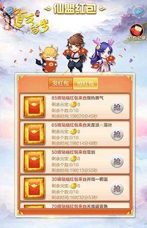 齐心红包则是通过仙盟秘境中获取,在每周结算仙盟秘境排行时,会发放给仙盟盟主对应排名的齐心红包,齐心红包没有发放和收取限制。由盟主自由选择时间发放。