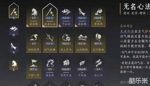 奇术:萧吟千浪和骑龙循环,凌云踏追boss。其他位置随便带,看需要。
