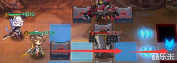 沐子菲在下图位置部署,使用【绝云突击A】移动到中间怪后面一格(如下图第一个箭头),然后再次使用【绝云突击】即可到达指定地点。