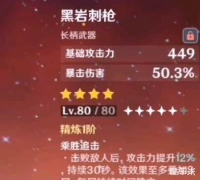 进入商城选择尘辉兑换界面,消耗一定数量的无主星辉可以直接换取这把武器,每月最多兑换三次。星辉可以通过祈愿抽到重复的角色或武器获得,积累足够数量后即可前往兑换。这把武器的基础攻击力在四星武器中属于中等偏上水平,副属性为暴击伤害加成,随着等级提升效果逐渐增强。特效名为乘胜追击,击败敌人后可以提升自身攻击力,持续时间30秒最多叠加三层。