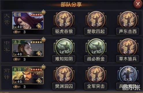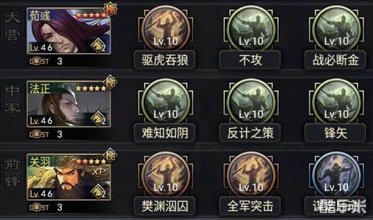 其实,除去星级、级别等因素,最重要的就是战法的选择和搭配的思路,即使同样的三个武将,阵容搭配的效果也是天壤之别。