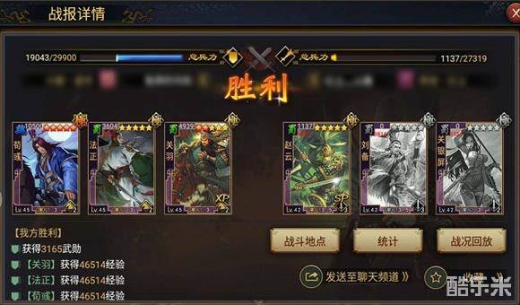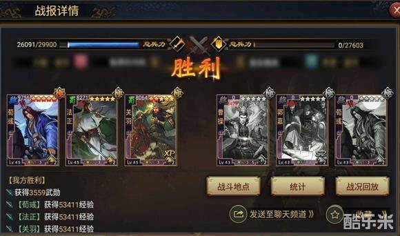 同时,该队伍加点时应注意蜀关羽和荀彧的速度要快于法正,这样才能使两个武将在第一回合被控后,第二回合能够优先发动战法。