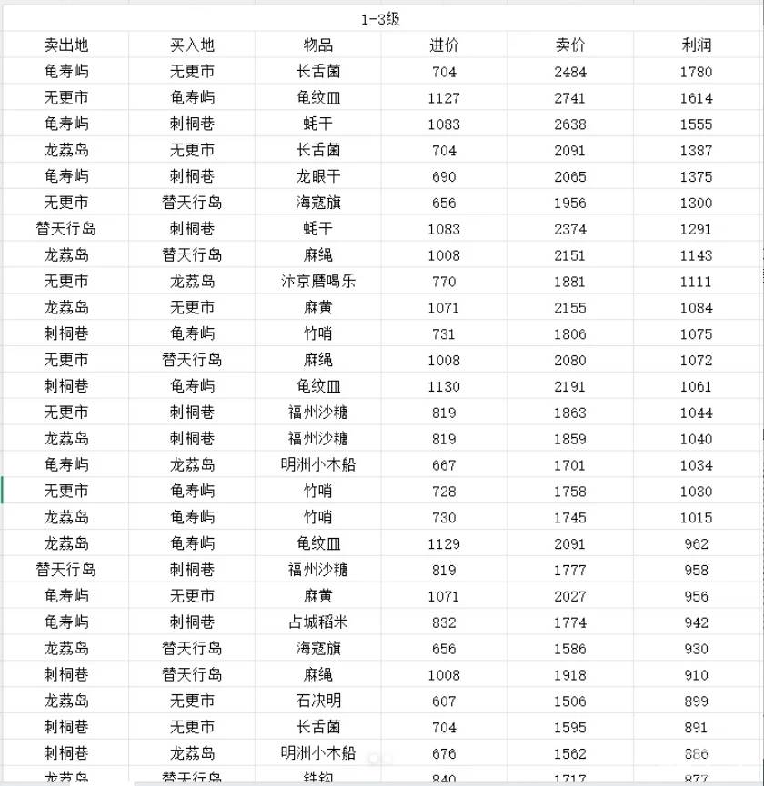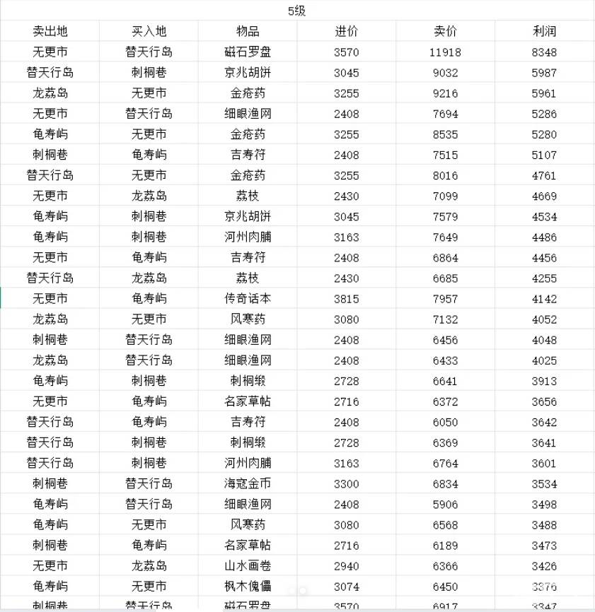 算了一下各个产品的大概利润,价格会实时波动所以数据不是完全精准,但利润排行相差不多,可供参考