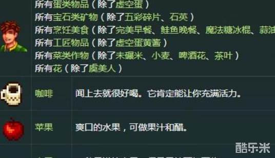 星露谷物语艾利克斯喜欢什么?很多小伙伴还不是很了解,今天酷乐米小编给大家带来了星露谷物语艾利克斯喜欢的物品,感兴趣的小伙伴一起来看看吧。