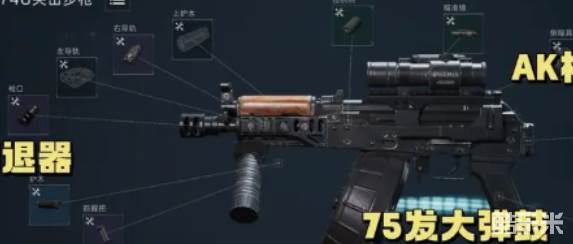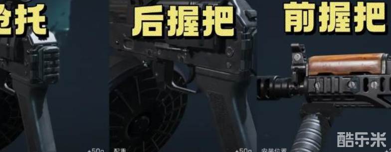 其他的方面枪口我们选择DTK制退器,前握把我们选择X25U斜握把,后握把选择实用AK后握把,瞄准镜就随便来个镭射,保证高机动,枪托我们选择AK枪托尾盖。