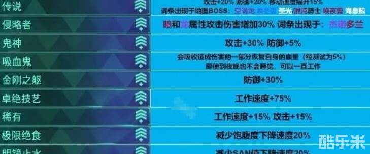 幻兽帕鲁泰拉瑞亚联动版本词条有哪些,传说类的词条攻击+20% 防御+20% 移动速度提升15%,词条出现于地图BOSS:空涡龙、唤冬兽、圣光/混沌骑士、唤夜兽、海皇鲸。下面和酷乐米小编一起来看看吧