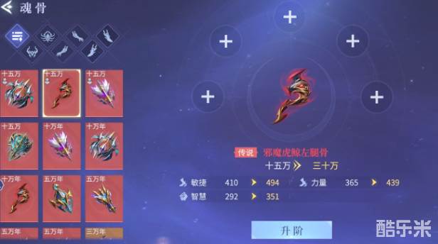 在获取之后别忘记,要选择尽快的提升等级。例如玩家在选择邪魔虎鲸左腿骨之后消耗对应的材料就可以迅速的提升等级。提升到一定程度时,那基础属性也会大幅度的增长。