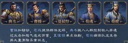 阵容:曹操+夏侯惇+张辽+许褚+典韦+荀彧+郭嘉