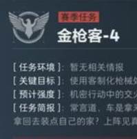 三角洲行动s5赛季中已经开启了金枪客4任务,玩家们需要携带指定价值的装备进入对局,并击杀敌方干员,由于很多伙伴们不知道怎么过,接下来酷乐米小编为大家带来具体的攻略,一起来看看吧。