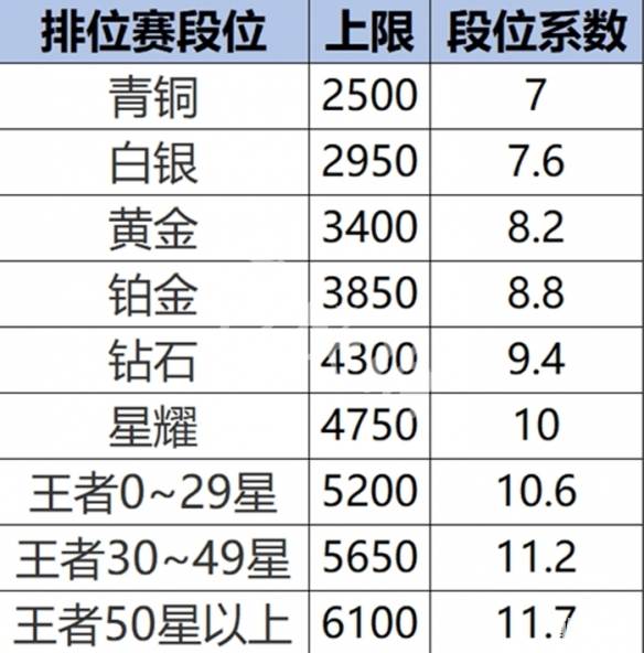 4、段位越高,表现分上限越高(如王者段位上限6100分)。