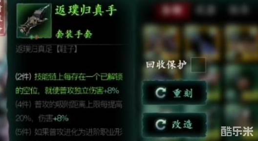 装备属性的选择需要围绕攻击力、暴击率、暴击伤害和防御穿透展开。返璞归真套装是普攻流的基础,其套装效果能显著提升普攻伤害,尤其是3件套和5件套的加成。装备词缀优先选择增加普通攻击伤害、暴击率和暴击伤害的属性,同时确保防御穿透达到100%,以应对高防御敌人。心法搭配上,魔堡故人、邪后等提供攻击加成的心法必不可少,副心法则侧重补充暴击和穿透属性。
