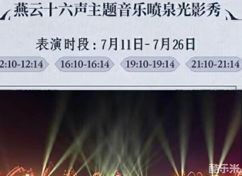 活动时间定于2025年7月11日至7月26日。在这期间,侠客们可以前往雁塔北广场欣赏《燕云十六声》主题曲音乐喷泉表演,感受游戏与现实交融的独特魅力。