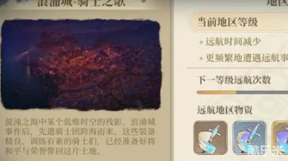可以通过混沌之海港口中选择“远航”进入,也能通过个人信息页快速进入。这是一个派遣挂机,选择队长,尽量提高队员阶级,星级的常驻轻松玩法,主要的流程就是派遣角色,带回物资,升级远航灯塔,逐步解锁同时深入到更多的区域。