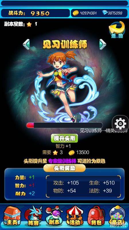 主角的勋章提升需要星星来提升等级,而星即不是钻石买的也不是金币买的,而是刷副本中获得的星星才可以买,其中每个副本有不同的挑战难度,挑战成功之后,就可以获得相应的星星,每个玩家通过副本获得的星星数量是固定的哦,所以玩家除了刷到三星是因为强迫症之外,更一方面就是可以获得更多的星星来达到勋章提升效果!